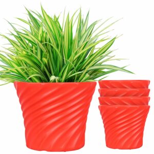 ORILEY 9 Inch Valencia Flower Plant Pot Decorative Planter Heavy Duty Gamla for Home Decor Office Balcony Indoor & Outdoor (Red Colour, Pack of 5)