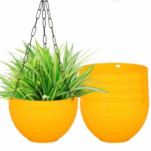 ORILEY 8?X5.5? Cerana Basket Hanging Round Pots Decorative Hooked Chain Plant Basket Planters Container Gamla for Indoor Home Living Room Decor & Outdoor Balcony Garden (Set of 5, Random Colour)