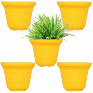 ORILEY 8?X6.5? Eco Fresh Round Pot Heavy Duty Plant Container Gamla Durable Lightweight Planter for Home Office Garden Balcony (Random Colour, Pack of 5)