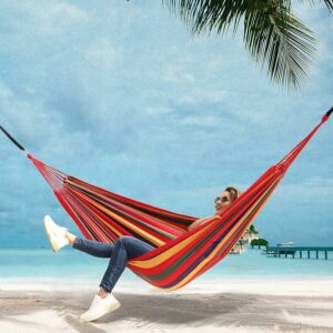 ORILEY Camping Hammock Swing Cotton Fabric Portable Travel Tree Hanging Bed Indoor Outdoor Garden Beach Sleeping Jhula for Baby Adults Men & Women (235 x 80CM)