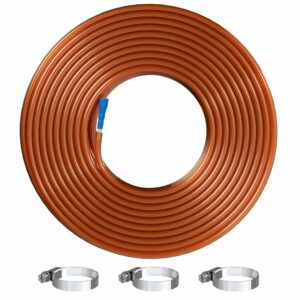 ORILEY 10Mtr 0.5 Inch Non-Braided Water Pipe with Hose Connector/Jointer/Nozzle & Clamps Lightweight Flexible Gardening Cleaning Outdoor-Indoor Use (32 feet, Orange)