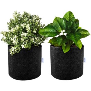 ORILEY Grow Bag Heavy Duty Geo Fabric Plant Pot Lightweight Bags Ideal for Gardening Balcony Terrace (Black, Round, 400 GSM 6 x 6 inch Pack of 2)