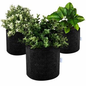ORILEY Grow Bag Heavy Duty Geo Fabric Plant Pot Lightweight Bags Ideal for Gardening Balcony Terrace (Black, Round, 400 GSM 6 x 6 inch Pack of 3)