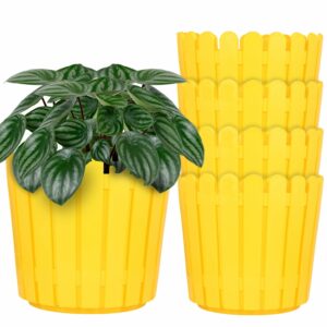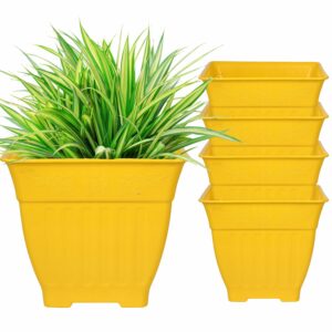 ORILEY 11 Inch Valencia Flower Plant Pot Decorative Planter Heavy Duty Gamla for Home Decor Office Balcony Indoor & Outdoor (Yellow Colour, Pack of 5)