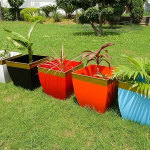 ORILEY 11 Inch Square Spiral Plant Pot Modern Durable Decorative Planters Heavy Duty Gamla for Home Balcony Garden Lawn Patio (Random Colour, Pack of 10)