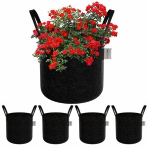 ORILEY Grow Bag Heavy Duty Geo Fabric Plant Pot with Sturdy Handles Lightweight Bags Ideal for Gardening Balcony Terrace (Black, Round, 500 GSM 10 x 10 inch Pack of 5)