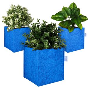 ORILEY Grow Bag Heavy Duty Geo Fabric Plants Flower Growing Bags Floor Standing Mount Type for Home Garden Balcony Nursery (Blue, Square, 400 GSM 6x6x6 inch Pack of 3)