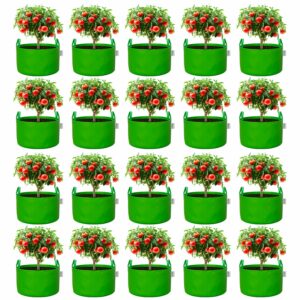 ORILEY Grow Bag Heavy Duty HDPE Plants Flower Growing Bags Floor Standing Mount Type for Home Garden Balcony Terrace Kitchen Nursery (Green, Round with Handle, 250 GSM 24 x 24 inch Pack of 20)