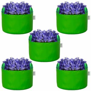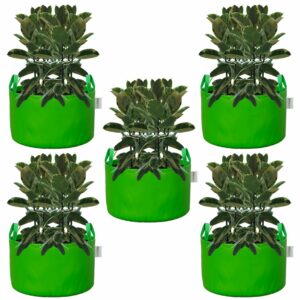 ORILEY Grow Bag Heavy Duty HDPE Plants Flower Growing Bags Floor Standing Mount Type for Home Garden Balcony Terrace Kitchen Nursery (Green, Round with Handle, 250 GSM 6 x 6 inch Pack of 5)