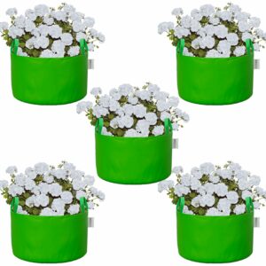 ORILEY Grow Bag Heavy Duty HDPE Plants Flower Growing Bags Floor Standing Mount Type for Home Garden Balcony Terrace Kitchen Nursery (Green, Round with Handle, 250 GSM 8 x 8 inch Pack of 5)