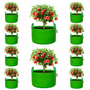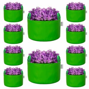 ORILEY Grow Bag Heavy Duty HDPE Plants Flower Growing Bags Floor Standing Mount Type for Home Garden Balcony Terrace Kitchen Nursery (Green, Round with Handle, 450 GSM 10 x 10 inch Pack of 10)