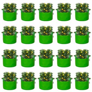 ORILEY Grow Bag Heavy Duty HDPE Plants Flower Growing Bags Floor Standing Mount Type for Home Garden Balcony Terrace Kitchen Nursery (Green, Round with Handle, 250 GSM 8 x 8 inch Pack of 20)