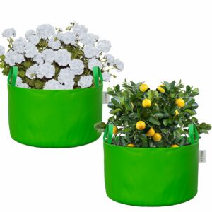 ORILEY Grow Bag Heavy Duty HDPE Plants Flower Growing Bags Floor Standing Mount Type for Home Garden Balcony Terrace Kitchen Nursery (Green, Round with Handle, 250 GSM 18 x 18 inch Pack of 2)