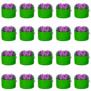 ORILEY Grow Bag Heavy Duty HDPE Plants Flower Growing Bags Floor Standing Mount Type for Home Garden Balcony Terrace Kitchen Nursery (Green, Round with Handle, 250 GSM 18 x 18 inch Pack of 20)