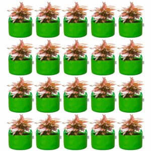 ORILEY Grow Bag Heavy Duty HDPE Plants Flower Growing Bags Floor Standing Mount Type for Home Garden Balcony Terrace Kitchen Nursery (Green, Round with Handle, 450 GSM 15 x 15 inch Pack of 20)