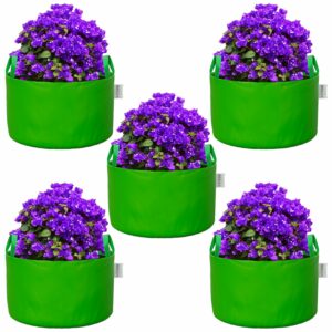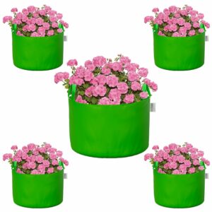 ORILEY Grow Bag Heavy Duty HDPE Plants Flower Growing Bags Floor Standing Mount Type for Home Garden Balcony Terrace Kitchen Nursery (Green, Round with Handle, 450 GSM 15 x 12 inch Pack of 5)
