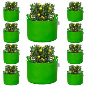 ORILEY Grow Bag Heavy Duty HDPE Plants Flower Growing Bags Floor Standing Mount Type for Home Garden Balcony Terrace Kitchen Nursery (Green, Round with Handle, 450 GSM 15 x 12 inch Pack of 10)