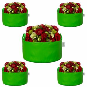 ORILEY Grow Bag Heavy Duty HDPE Plants Flower Growing Bags Floor Standing Mount Type for Home Garden Balcony Terrace Kitchen Nursery (Green, Round with Handle, 450 GSM 18 x 12 inch Pack of 5)
