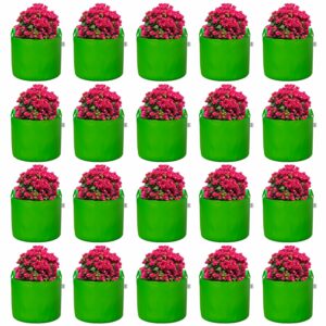 ORILEY Grow Bag Heavy Duty HDPE Plants Flower Growing Bags Floor Standing Mount Type for Home Garden Balcony Terrace Kitchen Nursery (Green, Round with Handle, 450 GSM 18 x 12 inch Pack of 20)