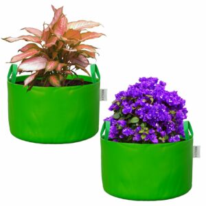 ORILEY Grow Bag Heavy Duty HDPE Plants Flower Growing Bags Floor Standing Mount Type for Home Garden Balcony Terrace Kitchen Nursery (Green, Round with Handle, 450 GSM 15 x 12 inch Pack of 2)