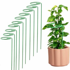 ORILEY 16″ Plant Support Stakes Adjustable Single Stem Metal Sticks Suitable for Small & Light Indoor and Outdoor Plants – (69g, Green, Pack of 10)