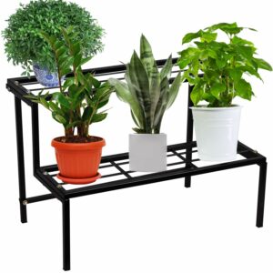 Oriley Ladder Plant Stand 2-Tier Potted Multiple Plants Rack Planter Shelf for Garden Terrace Corner Living Room Balcony- (Pack of 1, Black)