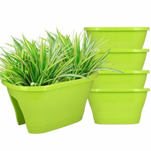 ORILEY 18 Inch Glory Railing Flower Pot with Lock Set Decorative Plant Container Sets Heavy Duty Window Gamla for Home Balcony Lawn Garden Patio Park (Pack of 5, Green & White Colour)