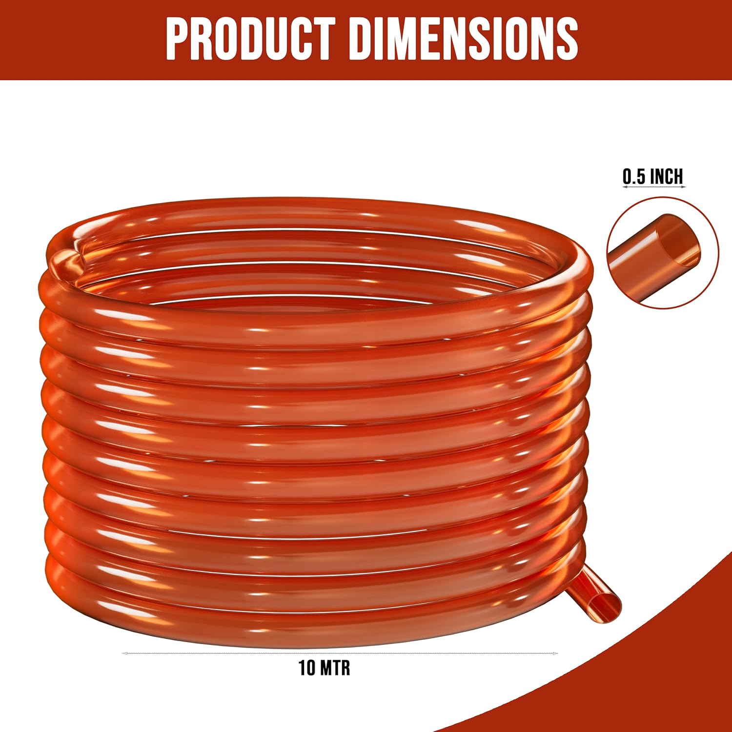 ORILEY 10Mtr 0.5 Inch Non-Braided Water Pipe with Hose Connector/Jointer/Nozzle & Clamps Lightweight Flexible Gardening Cleaning Outdoor-Indoor Use (32 feet, Orange)