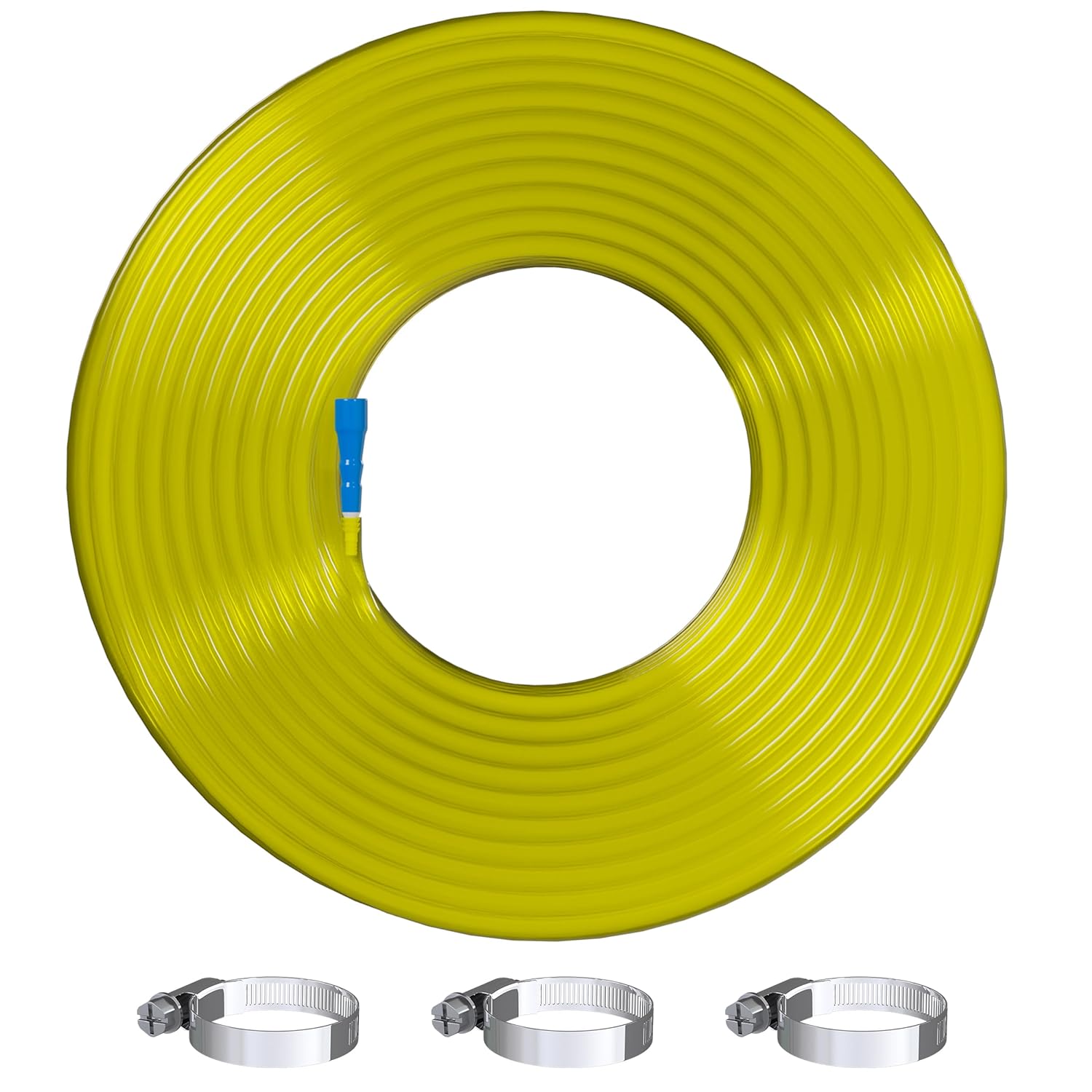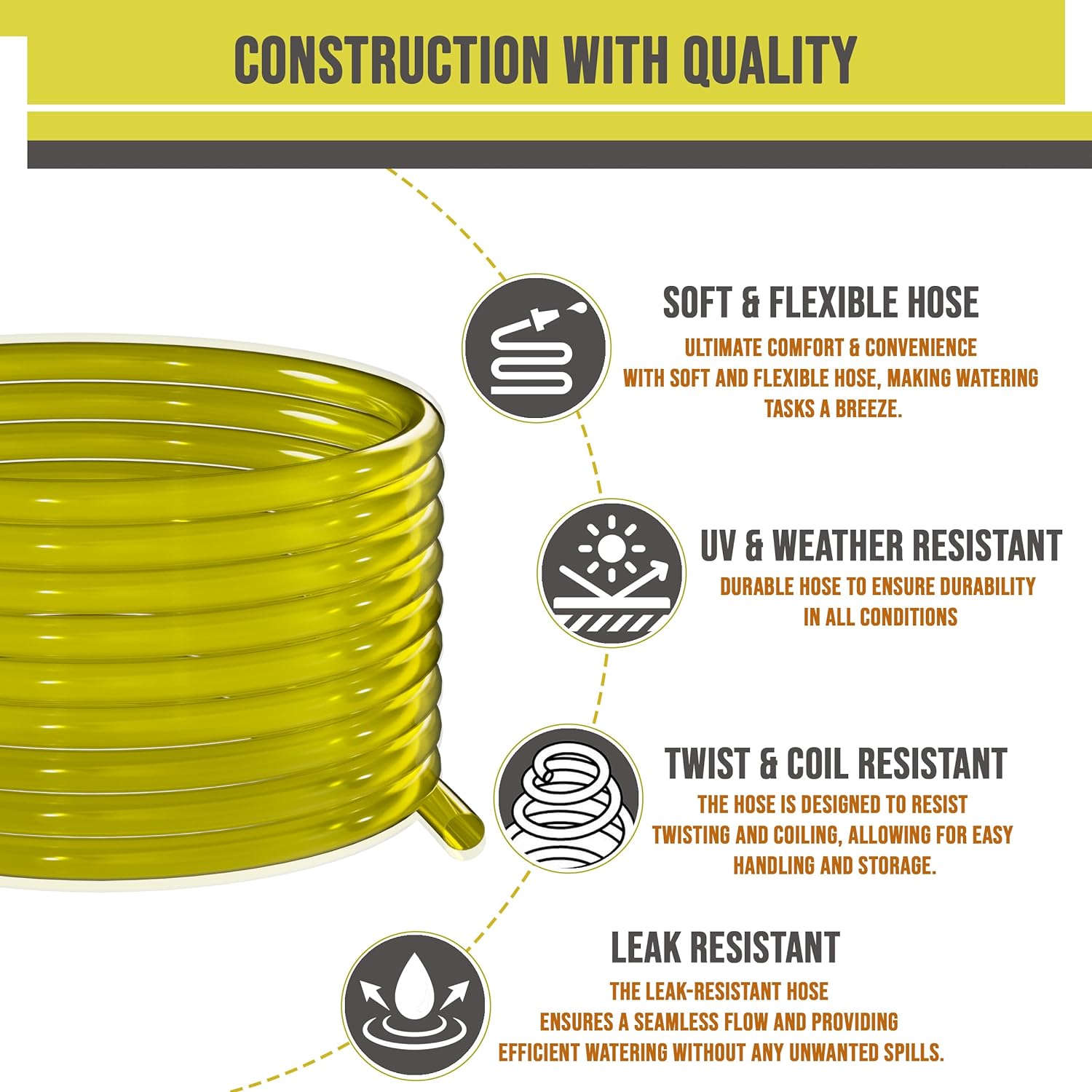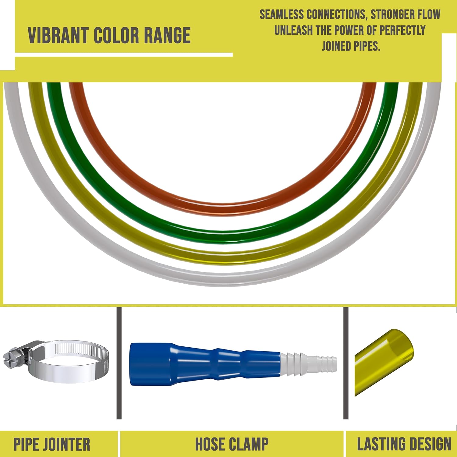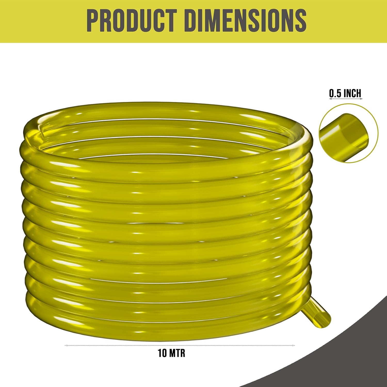 ORILEY 10Mtr 0.5 Inch Non-Braided Water Pipe with Hose Connector/Jointer/Nozzle & Clamps Lightweight Flexible Gardening Cleaning Outdoor-Indoor Use (32 feet, Yellow)