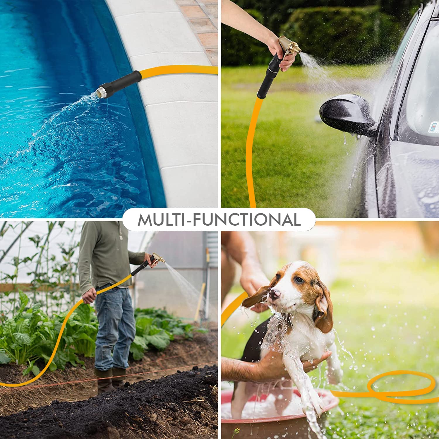 ORILEY 10Mtr 1 Inch Braided Water Pipe with Hose Connector/Jointer/Nozzle & Clamps Lightweight Flexible Gardening Cleaning Outdoor-Indoor Use (32 feet, Orange)