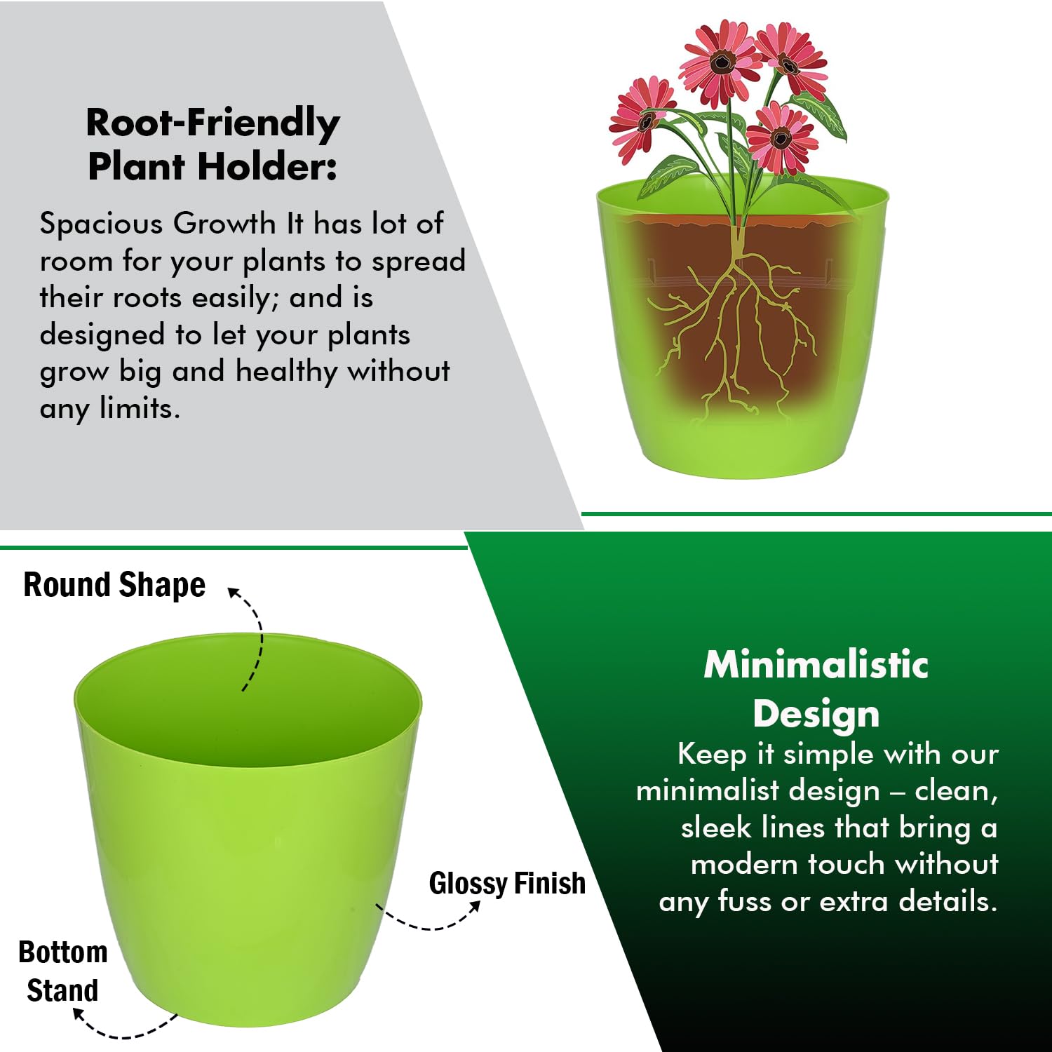 ORILEY 12 Inch Emerald Wheel Flower Pot Decorative Planter Heavy Duty Gamla for Balcony Home Decor Office Indoor & Outdoor (Green Colour, Pack of 5)