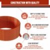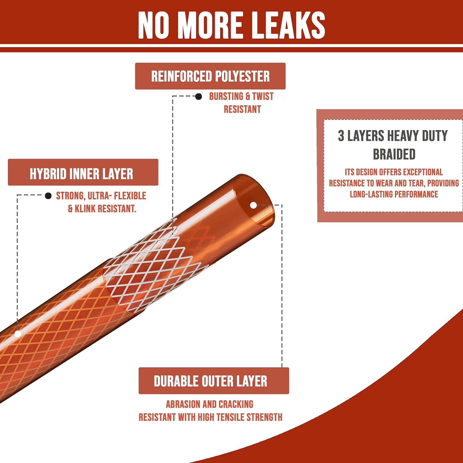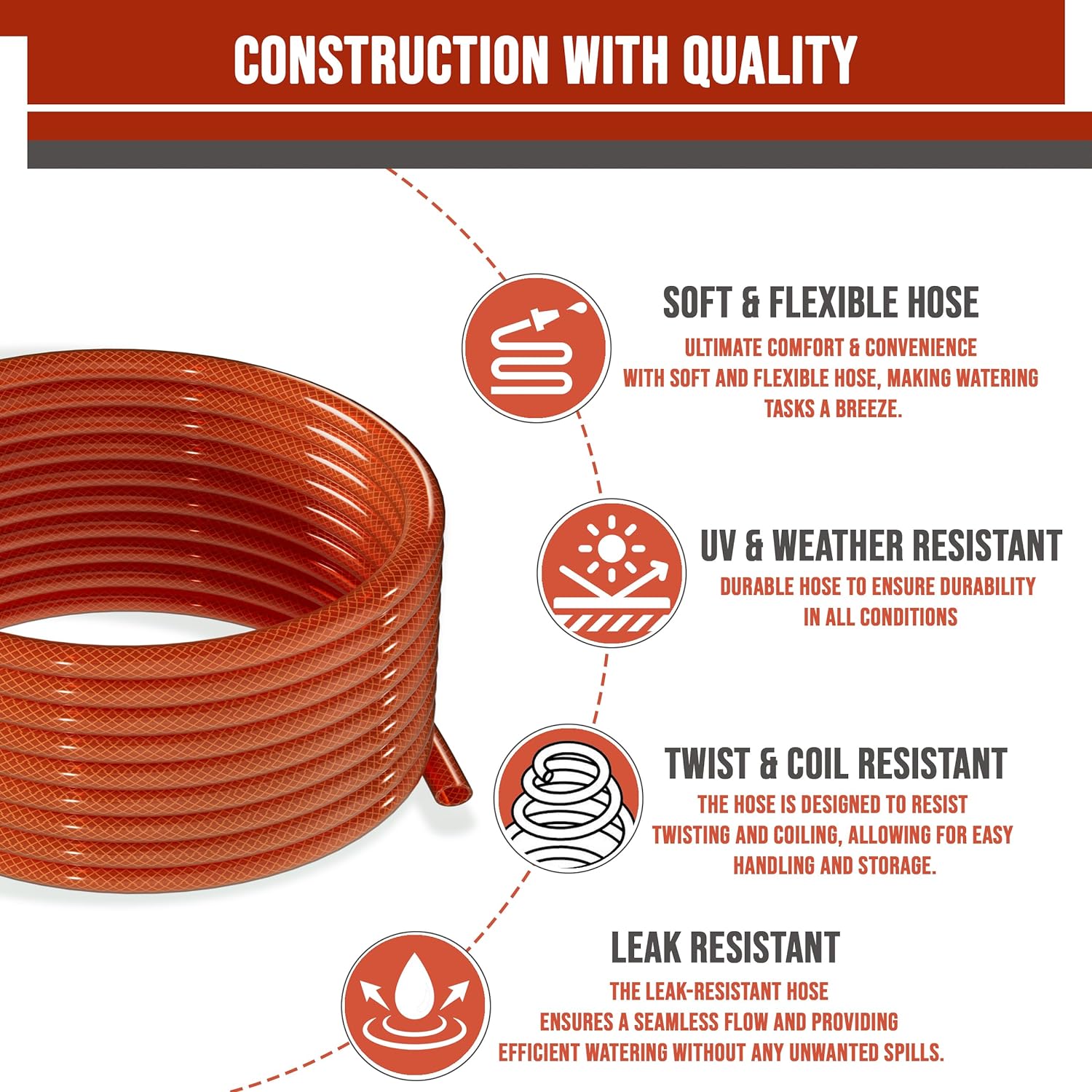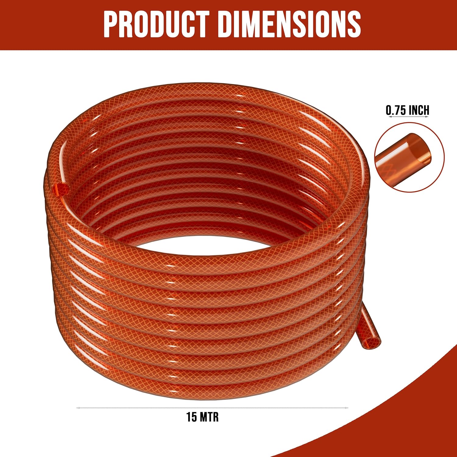 ORILEY 15Mtr 0.75 Inch Braided Water Pipe with Hose Connector/Jointer/Nozzle & Clamps Lightweight Flexible Gardening Cleaning Outdoor-Indoor Use (49 feet, Orange)