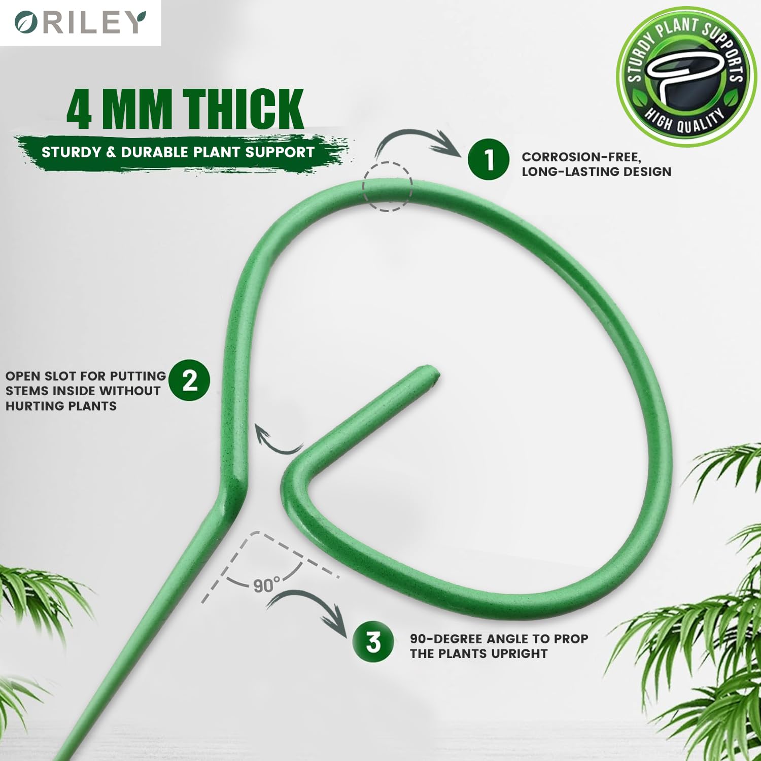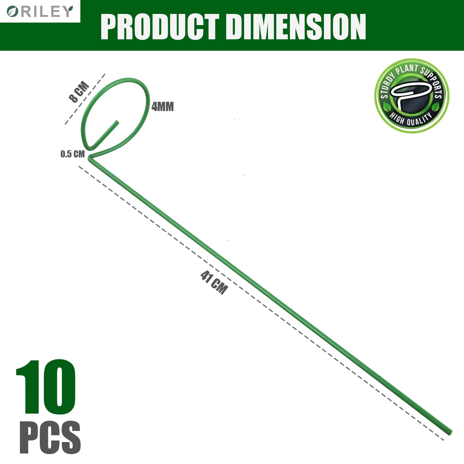 ORILEY 16″ Plant Support Stakes Adjustable Single Stem Metal Sticks Suitable for Small & Light Indoor and Outdoor Plants – (69g, Green, Pack of 10)