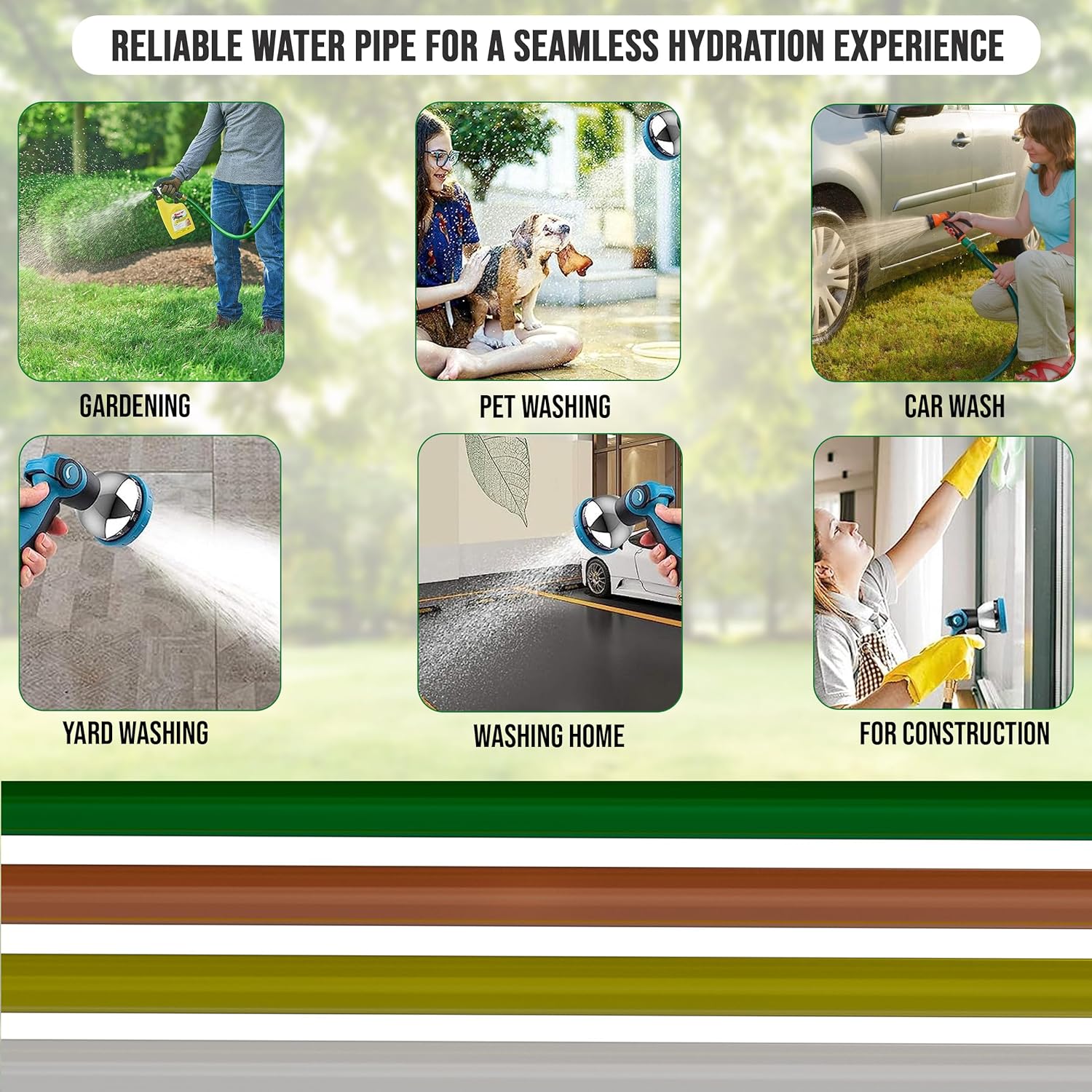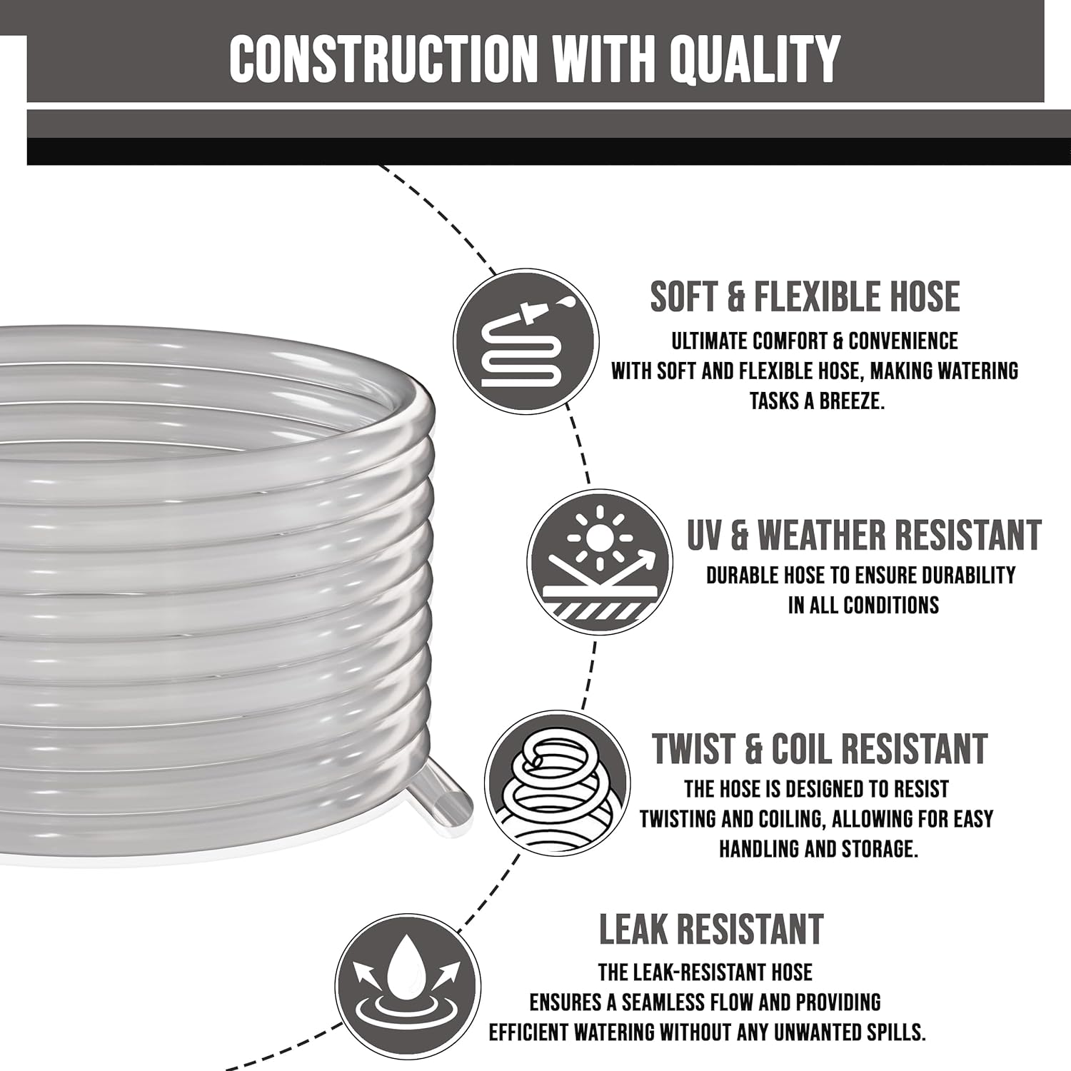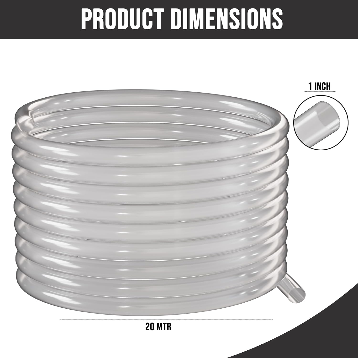 ORILEY 20Mtr 1 Inch Non-Braided Water Pipe with Hose Connector/Jointer/Nozzle & Clamps Lightweight Flexible Gardening Cleaning Outdoor-Indoor Use (65 feet, Transparent)