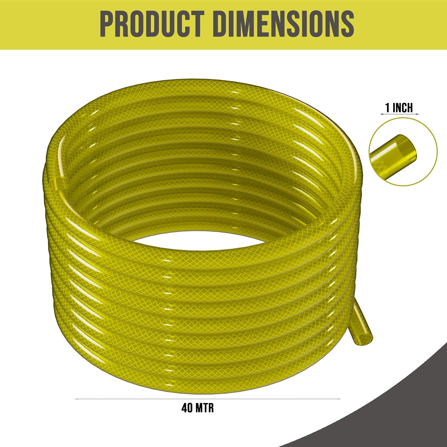 ORILEY 40Mtr 1 Inch Braided Water Pipe with Hose Connector/Jointer/Nozzle & Clamps Lightweight Flexible Gardening Cleaning Outdoor-Indoor Use (130 feet, Yellow)