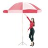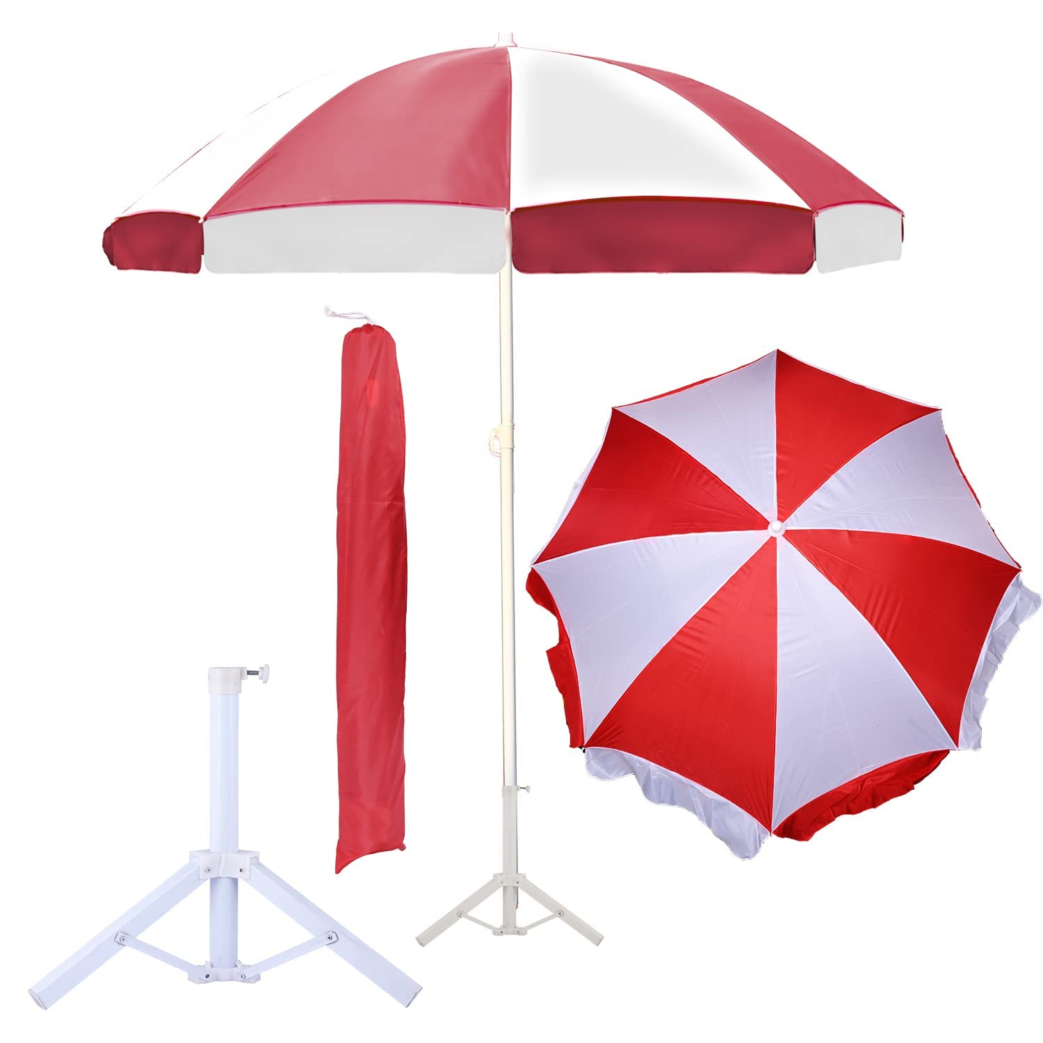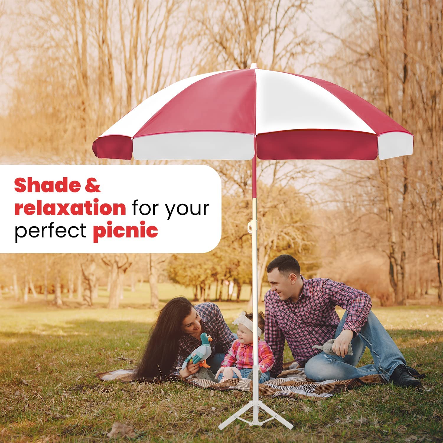 ORILEY 6ft/36in Outdoor Garden Umbrella with Stand Holder Big Size Water Resistant Heavy Duty Super Cloth Patio for Rain & Sun Protection (Red & White