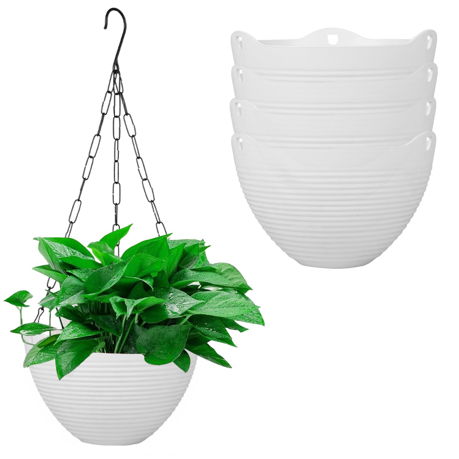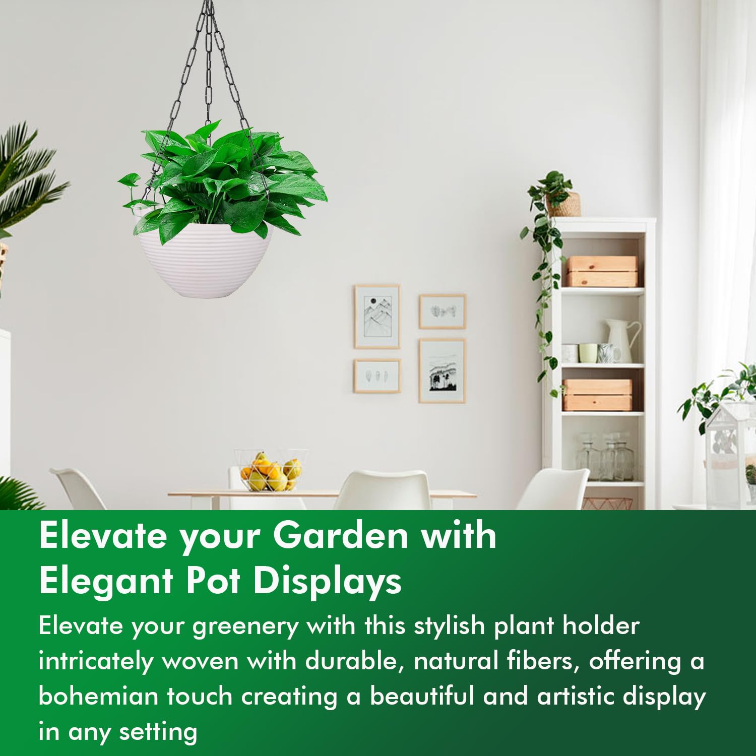 ORILEY 7.5 Inch Round Marvel Hanging Planter with Hook Chain Decorative Pots Holder for Home Balcony Garden Lawn Patio Park (Pack of 5, White & Yellow Colour)
