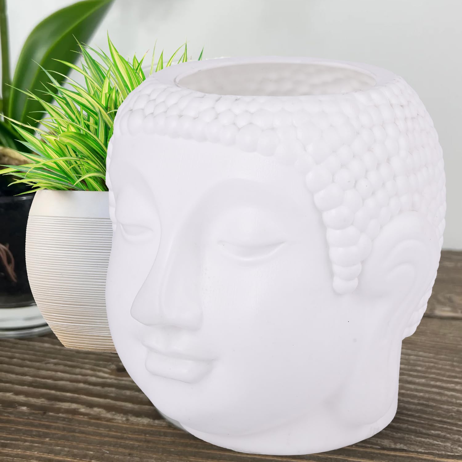 ORILEY AP-758 Smiley Buddha Pot Ceramic Decorative Gamla Planter for Indoor Outdoor Washroom Living Room Balcony Office Home Decor with (Plants & Flowers Not Included, Pack of 1, White)