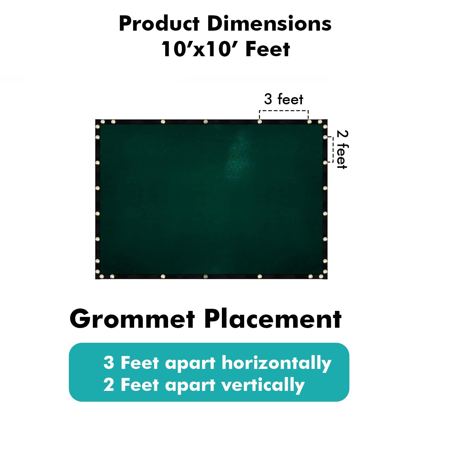 ORILEY Green Shade Net Multipurpose 125 GSM 90% Sunblock Cloth with Grommets Plant Barrier Fortune Agro Greenhouse Mesh for Sun Protection Balcony Lawn Home (10 x 10ft)