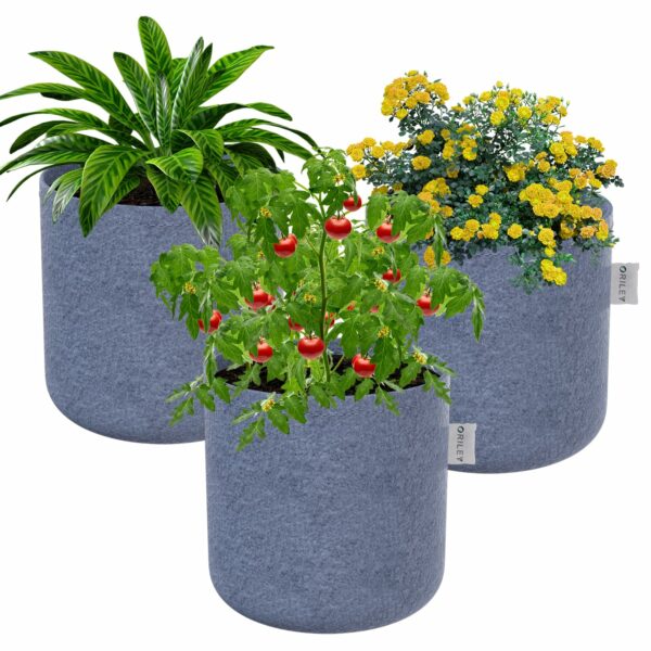 ORILEY Grow Bag Heavy Duty Geo Fabric Plant Pot Lightweight Bags Ideal for Gardening Balcony Terrace (Grey, Round, 300 GSM 6 x 6 inch Pack of 3)