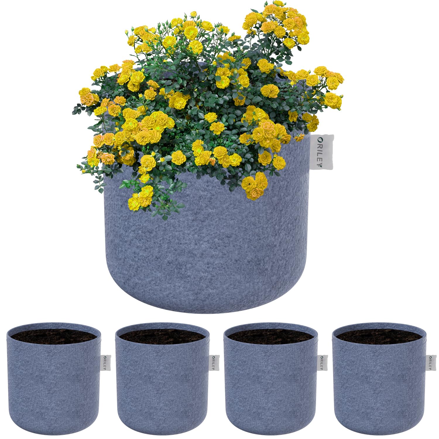 ORILEY Grow Bag Heavy Duty Geo Fabric Plant Pot Lightweight Bags Ideal for Gardening Balcony Terrace (Grey, Round, 500 GSM 4 x 4 inch Pack of 5)
