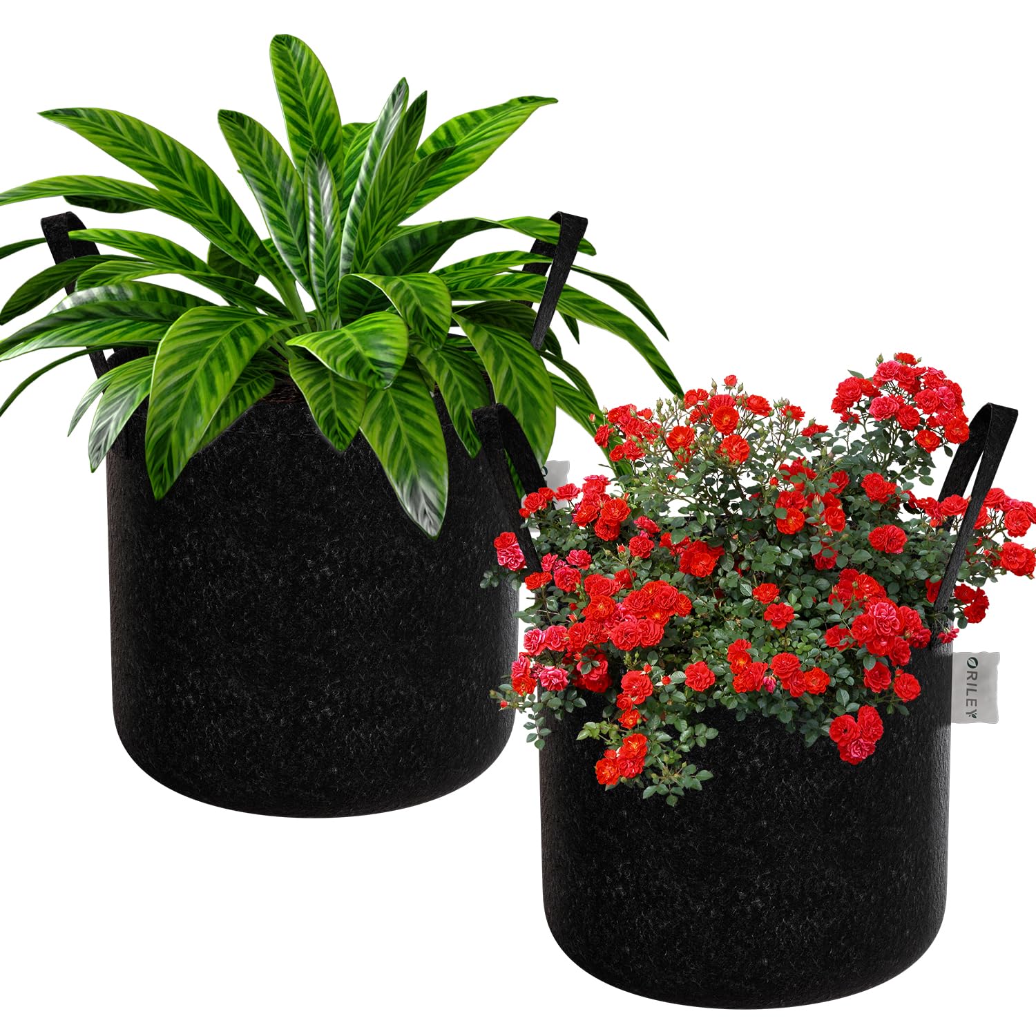 ORILEY Grow Bag Heavy Duty Geo Fabric Plant Pot with Sturdy Handles Lightweight Bags Ideal for Gardening Balcony Terrace (Black, Round, 300 GSM 12 x 12 inch Pack of 3)