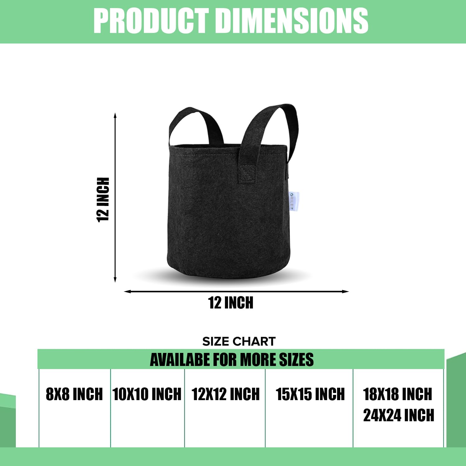 ORILEY Grow Bag Heavy Duty Geo Fabric Plant Pot with Sturdy Handles Lightweight Bags Ideal for Gardening Balcony Terrace (Black, Round, 500 GSM 12 x 12 inch Pack of 2)