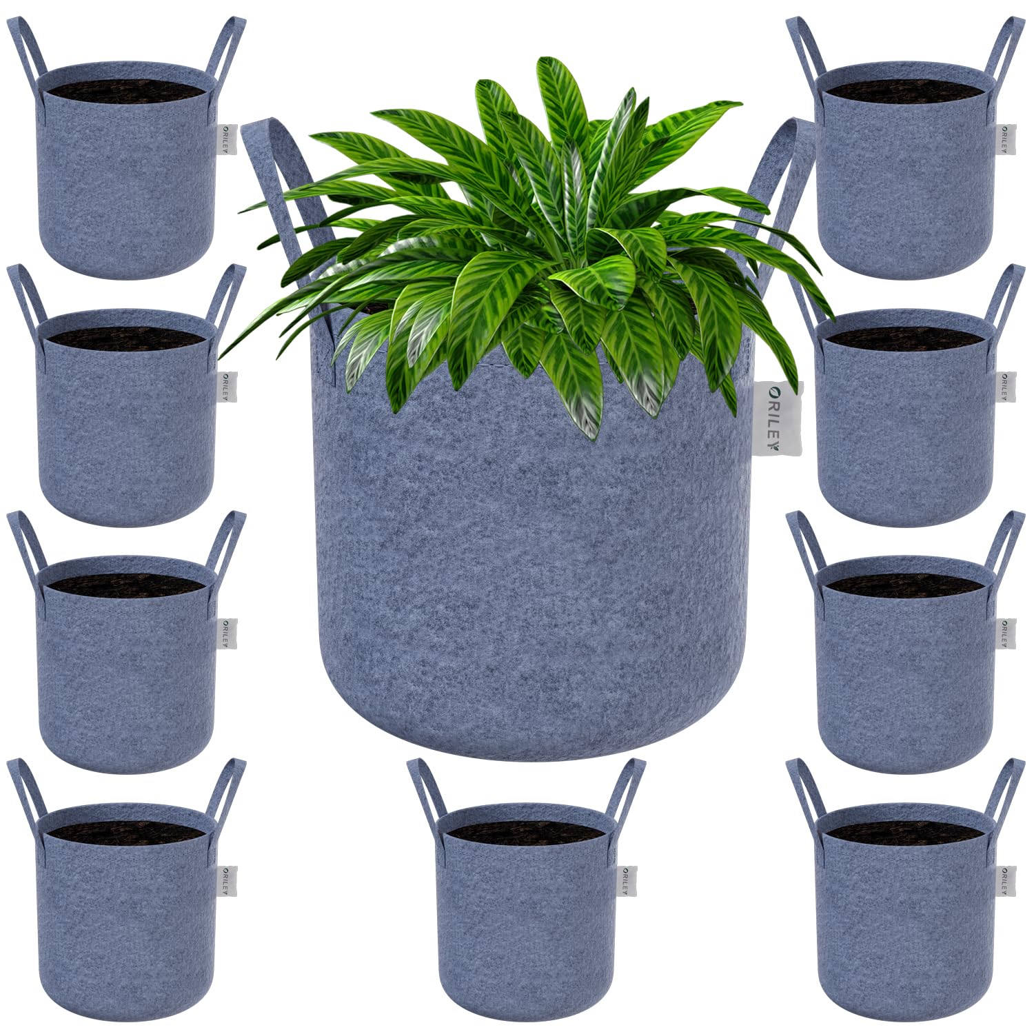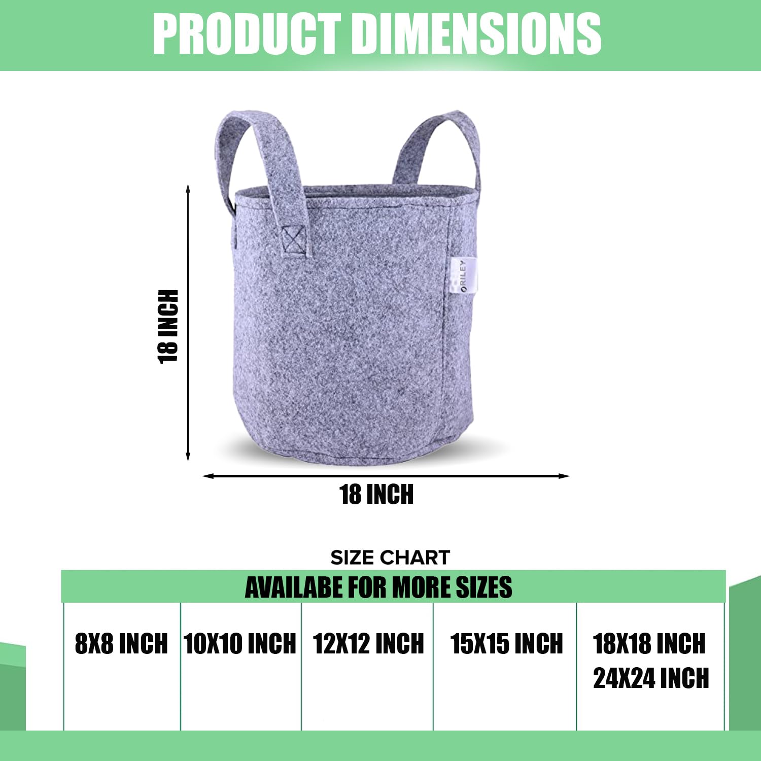 ORILEY Grow Bag Heavy Duty Geo Fabric Plant Pot with Sturdy Handles Lightweight Bags Ideal for Gardening Balcony Terrace (Grey, Round, 500 GSM 18 x 18 inch Pack of 10)