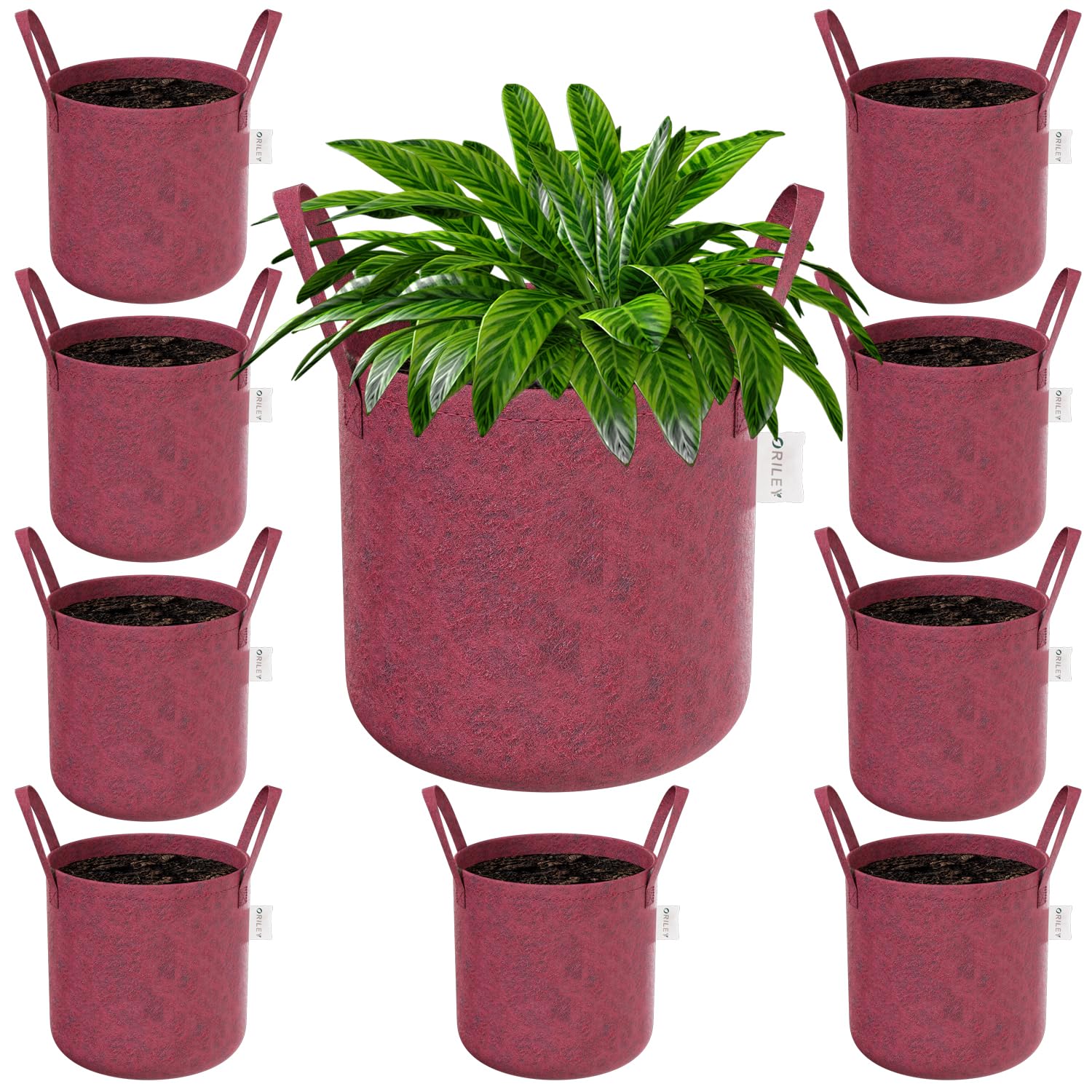 ORILEY Grow Bag Heavy Duty Geo Fabric Plant Pot with Sturdy Handles Lightweight Bags Ideal for Gardening Balcony Terrace (Red, Round, 300 GSM 18 x 18 inch Pack of 10)