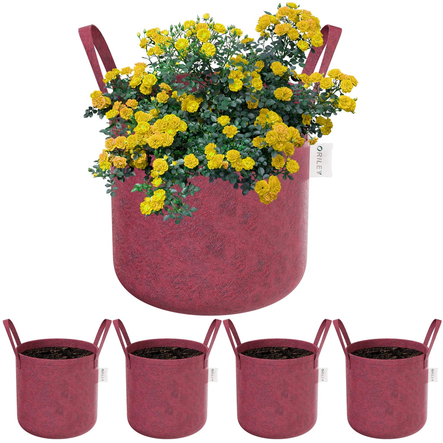 ORILEY Grow Bag Heavy Duty Geo Fabric Plant Pot with Sturdy Handles Lightweight Bags Ideal for Gardening Balcony Terrace (Red, Round, 300 GSM 24 x 24 inch Pack of 5)