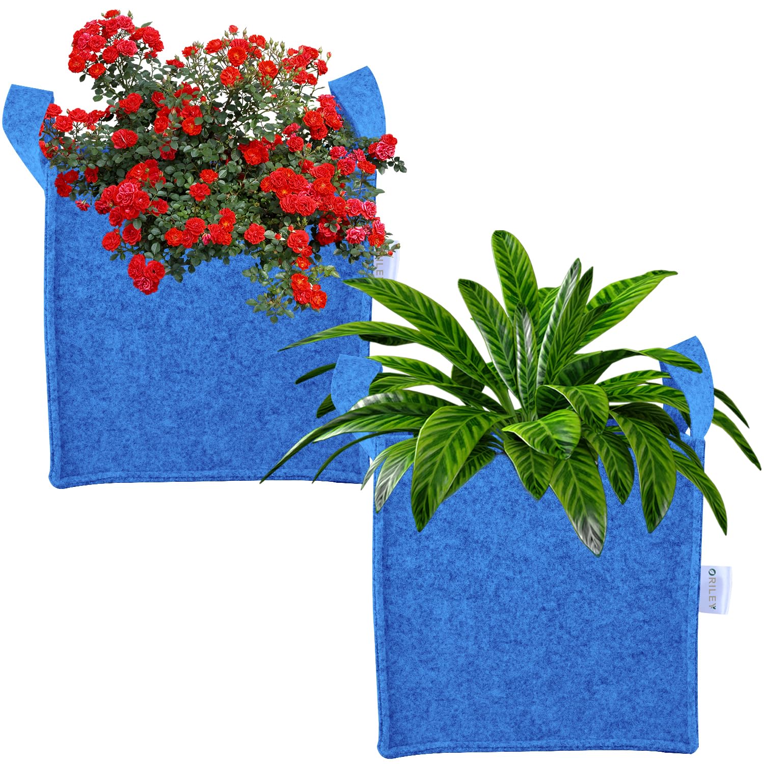 ORILEY Grow Bag Heavy Duty Geo Fabric Plants Flower Growing Bags Floor Standing Mount Type for Home Garden Balcony Nursery (Blue, Square, 300 GSM 15x15x15 inch Pack of 2)