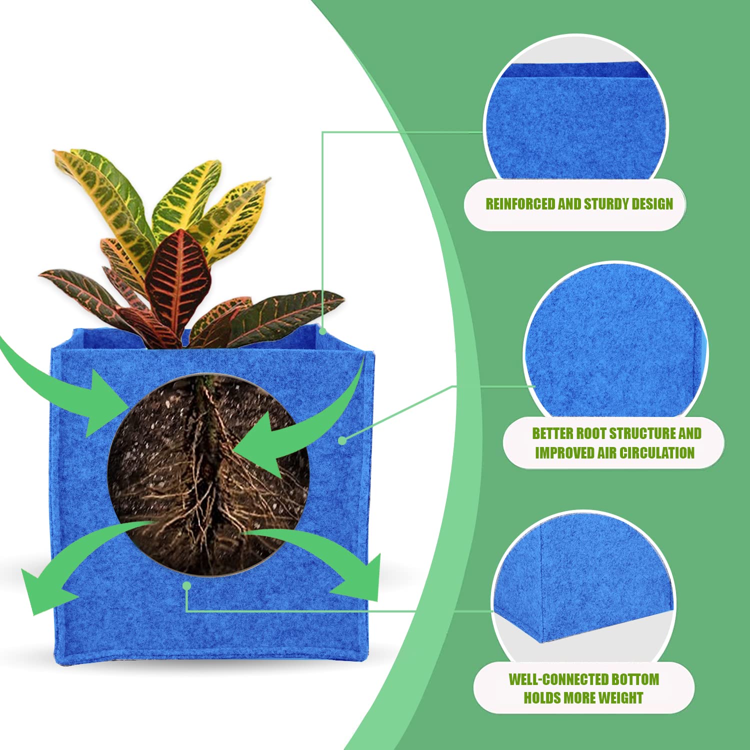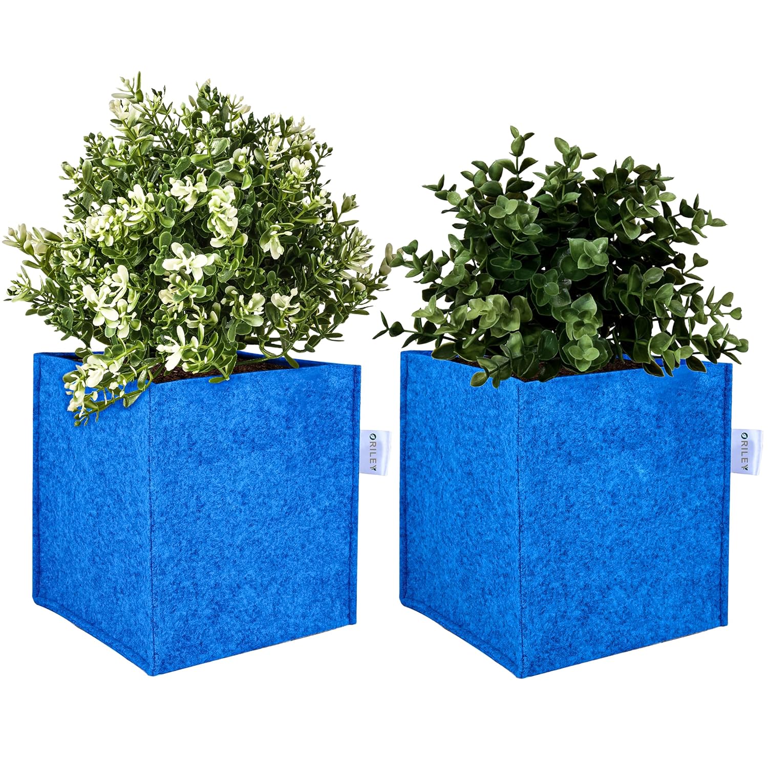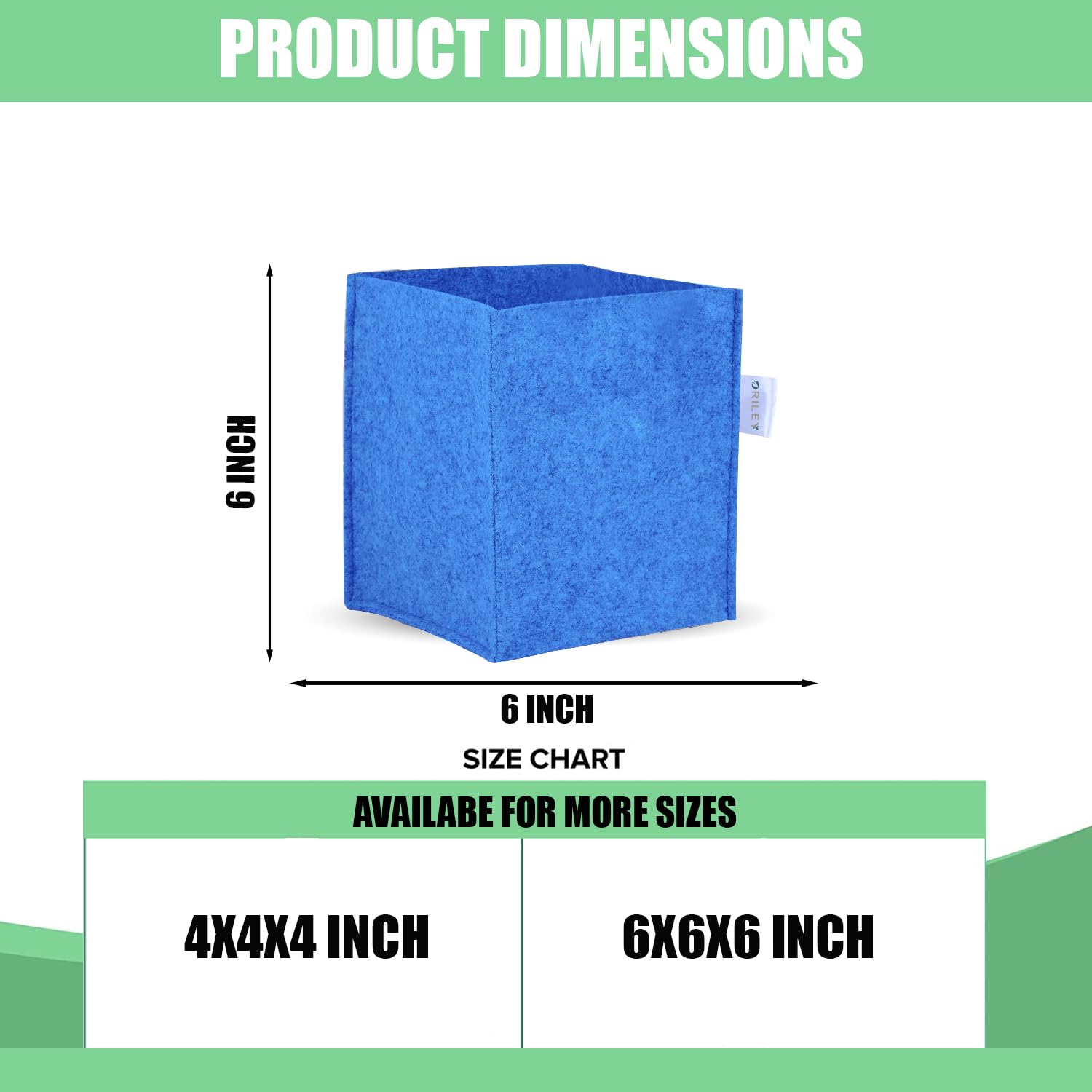 ORILEY Grow Bag Heavy Duty Geo Fabric Plants Flower Growing Bags Floor Standing Mount Type for Home Garden Balcony Nursery (Blue, Square, 400 GSM 6x6x6 inch Pack of 2)