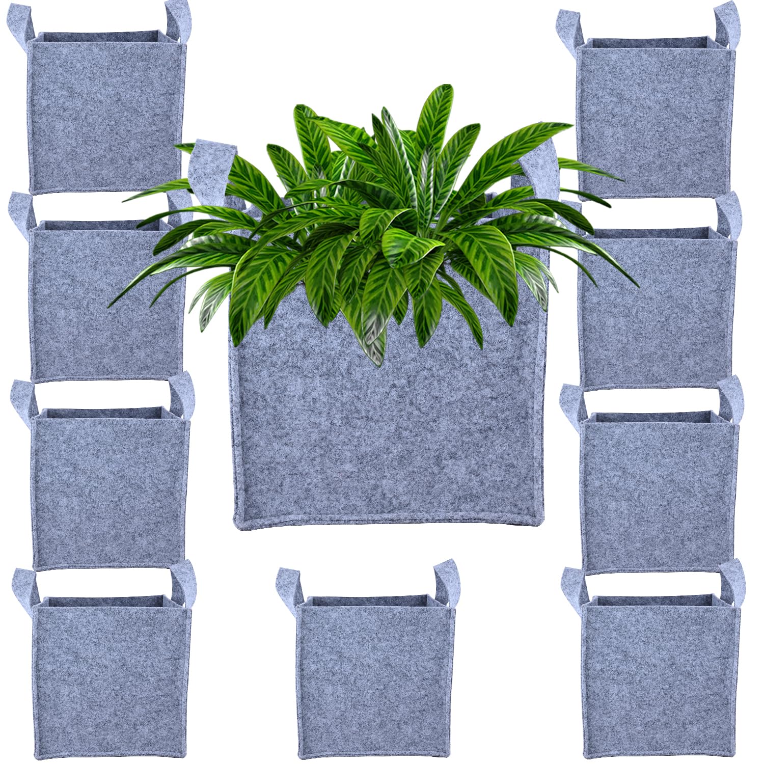ORILEY Grow Bag Heavy Duty Geo Fabric Plants Flower Growing Bags Floor Standing Mount Type for Home Garden Balcony Nursery (Grey, Square, 300 GSM 10x10x10 inch Pack of 10)