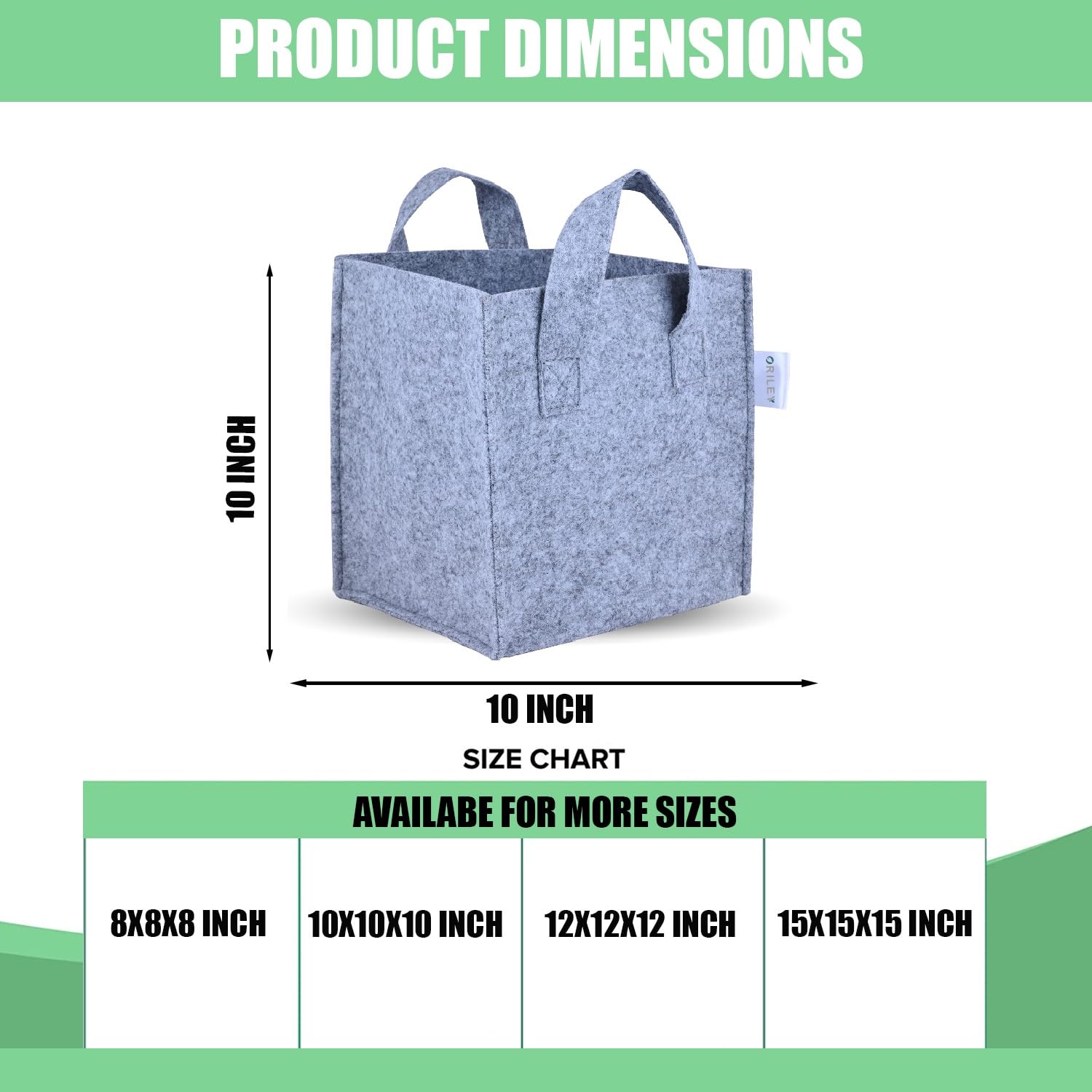 ORILEY Grow Bag Heavy Duty Geo Fabric Plants Flower Growing Bags Floor Standing Mount Type for Home Garden Balcony Nursery (Grey, Square, 300 GSM 10x10x10 inch Pack of 5)